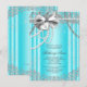 Convites de comunhão solene azul turquesa e cinza com laço de renda de pérolas e cruz em coração. Você pode personalizar facilmente este convite de comunhão solene azul turquesa e prata para o seu evento adicionando seus detalhes no estilo de fonte e cor, e na redação de sua escolha. Este é um design impresso sem jóias reais, pérolas, glitter, etc.