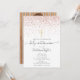 Com detalhes elegantes em brilho rose gold e um simples crucifixo dourado, este convite de comunhão solene pode ser personalizado com as informações do seu evento especial e foto na parte de trás. Desenhado por Thisisnotme©