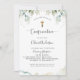 Elegante convite de comunhão com requintado verde de eucalipto e manchas de aquarela. ideal para ambos, menino ou menina Primeira Comunhão. Detalhes modernos e elegantes de caligrafia manuscrita. Capacidade de adicionar detalhes da cerimônia/sacramento e recepção ou café da manhã, almoço, jantar e reunião. No verso um lindo fundo aquarela. Parte de nossa coleção "Casamento e eventos elegantes de eucalipto verde" com uma variedade de produtos de coordenação disponíveis. Estilo moderno, elegante e simples.