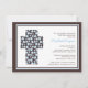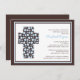 Cruz marrom contemporânea com flores azuis. Primeiro convite da Comunidade para uma comunhão de meninos.