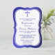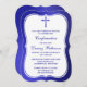 Convocações De Santa Comunhão Ou Confirmação Da Cruz Azul Metálica. Estes convites podem ser personalizados para qualquer evento sagrado, incluindo Confirmações, Crianças, Comuniões, Batismos e muito mais. Adicione seu texto personalizado usando a seção "Editar este modelo de design" ou clique no botão azul "Personalizá-lo" para alterar o estilo e a cor da fonte ou para adicionar uma foto ou texto extra à parte traseira do convite.