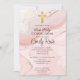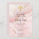 Celebre este marco especial com um belo e moderno convite da Primeira Comunhão. Este design apresenta uma simples cruz dourada contra um fundo de mármore rosa com sotaques dourados. Design o convite da Primeira Comunhão da menina perfeita personalizando a cor, a fonte, a data e todos os detalhes do texto.