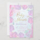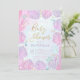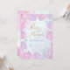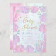 Doce sob o convite para chás de fraldas. Conchas, algas e pérolas roxas, cor-de-rosa e leve. Fundo de aquarela, folha de ouro falsa. Ilustrações e design por MuseBloomDesigns.