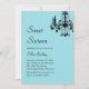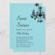 Um candelabro de cristal, tipo rico e um tom de turquesa moderno deram o tom para este convite e evento. É apresentado no documento de base; no entanto, sugiro que o shimmer do papel de gelo metálico seja um pouco mais reluzente.