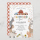 Convites de aniversário de criança de fazendas bonitas, com um simples fundo branco, animais de exploração adoráveis, incluindo vacas, cabras, suínos, ovinos, burros, cavalos, coelhos, patos e galos, e modelo de celebração de aniversário para crianças, fáceis de personalizar.