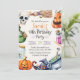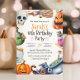 Boo! Aproveite este convite de festas de festas de aniversário de Halloween, crianças! É a maneira perfeita de convidar convidados para a sua festa de aniversário de Halloween para crianças e adultos. Este convite para o Dia das Bruxas foi projetado com muitos gráficos de aquarelas, incluindo crânios, abóboras, poções, um chapéu de bruxa e fontes e textos inspirados no Dia das Bruxas.