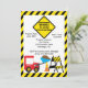 Comece a comemorar com este adorável convite para a construção. É perfeito para aquele amante de caminhão ou aquele homem da construção na sua vida. É um local de construção com um carregador vermelho de balde, um cone laranja e um cavalo bloqueando a área. Há uma grande forma de diamante amarelo no centro no topo do convite que você pode personalizar. O fundo é branco com uma borda listrada de diagnóstico amarelo e preto. Veja os muitos outros designs e produtos desta linha. ©babystar
