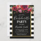 Convites Concurso de Bachelorette Floral Stripe Negra