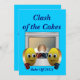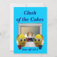 Esta ilustração gráfica bonitinha apresenta um par de personagens de bolo de desenho animado vestindo luvas de forno de verificação viradas para fora com colheres de madeira em frente a uma porta de forno de aço inoxidável com um dentro de assar de bolo. Facilmente personalizado para a competição ou competição da sua cozinha.