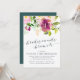 O convite para o brunch das madrinhas florais elegantes e modernas apresenta um buquê de flores de aquarela vibrantes e coloridas em tons de violeta, burgundy, creme e blush, com sotaques botânicos verdes e exuberantes. Personalize com seus detalhes de brunch-maids na elegante tipografia azul da meia-noite destacada com caligrafia de estilo manuscrito. Cartões invertidos a verde-jasper sólido.