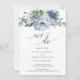 Este design apresenta uma bela ilustração floral azul pintada e elegante! Fazemos convite para o casamento. Veja a coleção inteira para itens correspondentes!