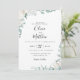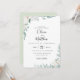Flores de jardim de aquarela... poeirinha poeirenta, galhos botânicos verdes, convite para casamento. A parte traseira da placa apresenta uma sólida coordenação de cor verde empoeirada. Personalizar texto, estilo de fonte, cor e tamanho.