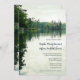 Esta carta de convite para casamento rusticado do lago de Montanha, criada da minha fotografia pessoal de caiaque e com um sutil efeito de aquarela digital, apresenta uma bela cena rústica sob um céu ensopado com água levemente ripada mas calma refletindo verdes distantes, árvores de cedro e estruturas de rocha, perfeita para uma montanha, lago ou celebração de casamento ribeirinho - por katz_d_zynes | parte da coleção de casamentos rustic do lago de montanha >> https://www.zazzle.com/collections/119499271518309609 | utilize o link "Perguntar a este Designer" abaixo para obter assistência que personalize este convite ou para pedidos adicionais de coordenação de papelaria em Mountain Lake