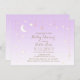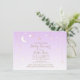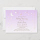 O suave e sonhador convite para chás de fraldas apresenta lua crescente e um dourado e estrelas brancas espalhadas sobre fundo roxo e branco gradiente. Clique para personalizar ainda mais para alterar o estilo e a cor da fonte.