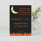 Convite para festas de Halloween com borda de jack-o-lanterna com lua crescente brilhante e morcego em fundo preto. Convites vêm com envelopes e sua escolha de papel.