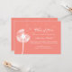 Um grande dandelion, com sementes flutuantes, decora esse convite em fundo de coral. Ele é mostrado no papel básico; no entanto, recomendo o peso e a textura do papel de linho para uma sensação mais luxuosa. Se forem necessários itens adicionais para coordenar com este convite, contacte-nos em prettyfancyinvites@gmail.com com o seu pedido.