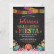 Este design colorido apresenta flores coloridas e banners Papel Picado. É perfeito para uma festa de formatura temática fiesta.