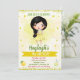 Convite de aniversário de limão para a garota. Convidado para a festa da limonada. Um convite bonito para a sua festa de aniversário de docinho com limões amarelos, limonada e morena de cabelo escuro. Simplesmente edite este menu de personalização fácil de usar modelo para torná-lo especial.