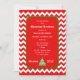Este convite para o almoço de Natal é apresentado num fundo de padrão chevron vermelho e branco. Há um retângulo vermelho sobre o padrão do diafragma que está borrado em verde. Uma árvore de Natal Chevron, verde e branca, divertida aparece no fundo, assim como a palavra "Natal" e o ano. Todos os detalhes importantes do seu convite de Natal podem ser personalizados nesta design. Direitos autorais