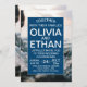 Este moderno convite azul marinho náutico é perfeito para um cruzeiro ou festa de noivado de praia, casamento após festa, aposentadoria, graduação ou qualquer evento feliz. A simples design apresenta uma bela paisagem marinha, ondas marítimas, animais marinhos e recifes coloridos.
