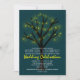 String of Lights Rustic Oak Tree Wedding Convites com cor azul-verde e amarela. O design da árvore é uma silhueta nua de galhos de árvores iluminada com luzes brilhantes. Estas são perfeitas para um casamento noturno, queda ou casamento no inverno. Conjunto de Casamento Correspondente: