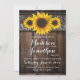 Rustic Country Sunflower Wedding Modelo num fundo de madeira escura. Apenas mude a redação para torná-la sua. A parte superior apresenta uma bela coleção de três designs de girassol desenhados à mão em um padrão de borda de renda de estilo vintage. O plano de fundo do convite é um design conselho de madeira escura. Impresso na sua escolha de papel.