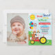 Este design bonito e colorido mostra os adoráveis animais de fazenda em um trator. Você pode personalizar facilmente o convite com seus detalhes. Para personalização mais avançada deste design, basta selecionar o botão "Personalizar mais". © Blue Bunny Studio