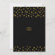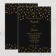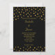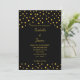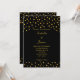 Convite de Casamento preto com confete dourado com aparência metálica. O verso tem dois anéis dourados em fundo preto. Cartões de convite de casamento preto dourado elegantes.