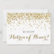 Para a noiva que ama ouro, brilho e luxo! Uma maneira divertida de convidar suas amigas favoritas para fazerem parte do seu grupo de damas de honra (e do seu grande dia!) Com confetes de brilho dourado falso (impressos planos). Lê "Você será minha Dama de Honra?" na frente e "Significaria muito se você dissesse Sim!" no verso. Personalize com nomes e data do casamento para tornar seu pedido único. Cartões para Dama de Honra, Dama de Honra Principal, Menina das Flores, Dama de Honra Júnior e outros também disponíveis. ©2015 Weddings*n*Whimsy