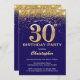 Marinho aniversário de 30 anos Azul e Dourado Confetti Convite de Aniversário para Confetti. Para mais personalização, clique no botão "Personalizar" e use nossa ferramenta de design para modificar este modelo.