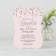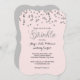 Bonito convite para chás de fraldas de confete cor-de-rosa e prata.