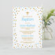 Celebre o batismo do seu filho com este belo convite de confete azul e dourado. Também pode ser usada para uma cerimônia de dedicação.