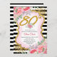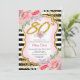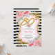 Um elegante design feminino de flores de aquarela em tons de rosa macio com um toque de verde sobre um fundo de linha horizontal branca e preta e um pedaço de confete de ouro. Você pode personalizar este cartão clicando no botão "personalizar".