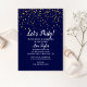 Este Partido do Vamos Dourado Confetti no Marinho convite de festas Azul de aposentadoria é perfeito para uma celebração de aposentadoria clássica. O design apresenta um confete dourado falso de tendência com uma caligrafia branca elegante sobre um fundo azul marinho.