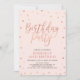 Celebre seu dia especial com este modelo na moda moderno de convites de aniversário. Este design apresenta um confete texturizado rosa de ouro chic com um fundo cor-de-rosa pincelado.