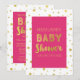 Convites de bebê de menina personalizada com padrão de configuração de efeito de ouro e cor-de-rosa quente fuchsia com letras modernas de estilo manuscrito. Personalizável com seu texto. Entre em contato conosco para solicitar uma ocasião diferente.