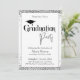 Usando duas fontes distintas, criei gráficos para o seu anúncio. O cabeçalho diz "Festa de formatura" e, acima dele, está um gráfico representando um boné de formatura. Todo o texto foi colocado sobre um retângulo branco delimitado que cobre um fundo também branco. Confetti preto e um gráfico ombre foram configurados de modo que se você quiser mudar a cor de fundo, a borda externa criará um efeito de borda. O boné de formatura também foi colocado no centro das costas. // 130, 131 //