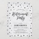 Celebre seu dia especial com este modelo na moda moderno do convite de festas de Reforma. Este design apresenta um confete preto chic com fundo de mármore.