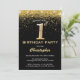 Convites Confetti primeiro aniversario preto e Dourado com