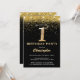 Convite de aniversário de Confetti, primeiro aniversario Black e Dourado Glitter Confetti. Para mais personalização, clique no botão "Personalizar" e use nossa ferramenta de design para modificar este modelo.