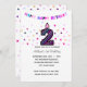 Um convite divertido para segundo aniversário de confetti, que você poderá personalizar facilmente com os detalhes da sua festa. A frente apresenta um número de striped colorido dois junto com uma feliz mensagem de aniversário. O fundo é um confete colorido. Por favor, veja fotos.