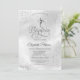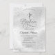 Elegante cruz prateada, e confete em um fundo de cinza.