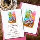 Convide amigos e família para comemorar sua nova casa com este Rustic Floral Coffee Set Housewarming Invitation. Este design apresenta uma pintura de aquarela original que mostra uma vibrante configuração de café Talavera numa mesa de madeira rústica, rodeada por flores amarelas-alaranjadas quentes numa base floral. A cena evoca um encanto acolhedor, country, com uma parede rosa rústica e uma janela azul de madeira abrindo para um jardim esmagador onde se podem ver pistas de folhagem verde. Uma cortina de sarape mexicana colorida sobre um lado da mesa, adicionando um salto de cor tradicional. Perfeito para aqueles que amam temas de vintage, floral e country, este convite abarca o calor e a beleza da casa com uma mistura de arte mexicana. O design de convite celebra o conforto, a cor e a alegria de acolher outros no seu novo espaço.