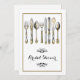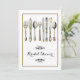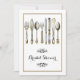 Estragar a noiva para estar com um belo chá de panela de chá. DESIGN - Uma ilustração de facas, garfos e colheres antiquadas em prata falso e ouro têm rosas, lírios de arum e gramíneas intrincadas neles. Uma na moda floral em quadros pretos um modelo de cor ouro que pode ser personalizado para se adequar ao ensaio especial de casamento, noivado ou aniversário.