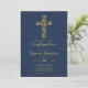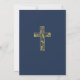 Convite de confirmação azul moderno com uma cruz dourada.Personalize com o seu texto. Verifique todos os outros itens nesta coleção de confirmação bonito para ele.