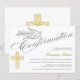 © Designs socialitas. Este belo convite para confirmação de caligrafia tem uma pomba e uma cruz de cor dourada. Um convite encantador que é neutro em termos de gênero e que pode ser usado para um menino ou menina. Substitua facilmente nosso texto de modelo com o seu. Todos os elementos de design podem ser movidos, redimensionados ou excluídos.