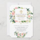 Design elegante, de cor branca, creme, flores cor-de-rosa pinceladas, quadro quadrado de ouro falso, divisor floral, tudo sobre fundo branco; no verso, o mesmo buquê de flores. Use Personalizar este modelo para adicionar suas informações. Para itens correspondentes, visite minha Coleção de Confirmação.