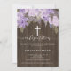 Confirmação branca da tipografia branca com lavanda púrpura púrpura esbranquiçada folha de aquarela floral numa madeira marrom rústica. Um convite de festas de confirmação moderno com esta moderna, simples, elegante e elegante tipografia de letras brancas de pincel em um fundo rústico. Perfeito para uma festa simples, elegante e moderna. Se precisar de algum texto mudado e personalizado, não hesite em entrar em contato comigo!
