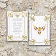 Celebrar o sacramento sagrado da Confirmação com este convite elegante, com uma pomba de ouro em ximersão, simbolizando o Espírito Santo, enquadrada numa fronteira radiante de ouro. Esta design incorpora o profundo significado espiritual da Confirmação, lembrando os apóstolos que recebem o Espírito Santo no Pentecoque. Personalize-o com os seus detalhes para criar a manutenção do eterno para a sua ocasião especial.