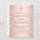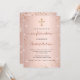 Um fundo de aparência metálica falsa rosa dourado. Decorado com rosa dourado, poeira cintilante rosa. Personalize e adicione um nome e detalhes. O nome é escrito com um script de estilo manuscrito